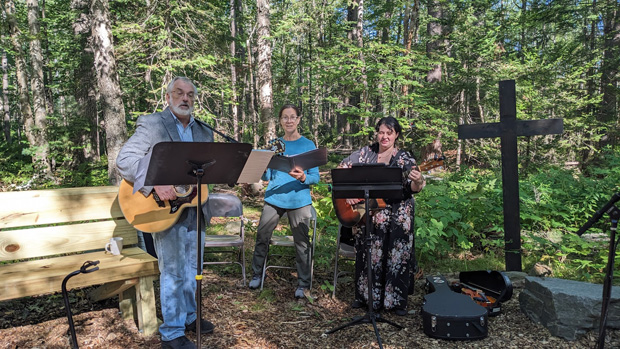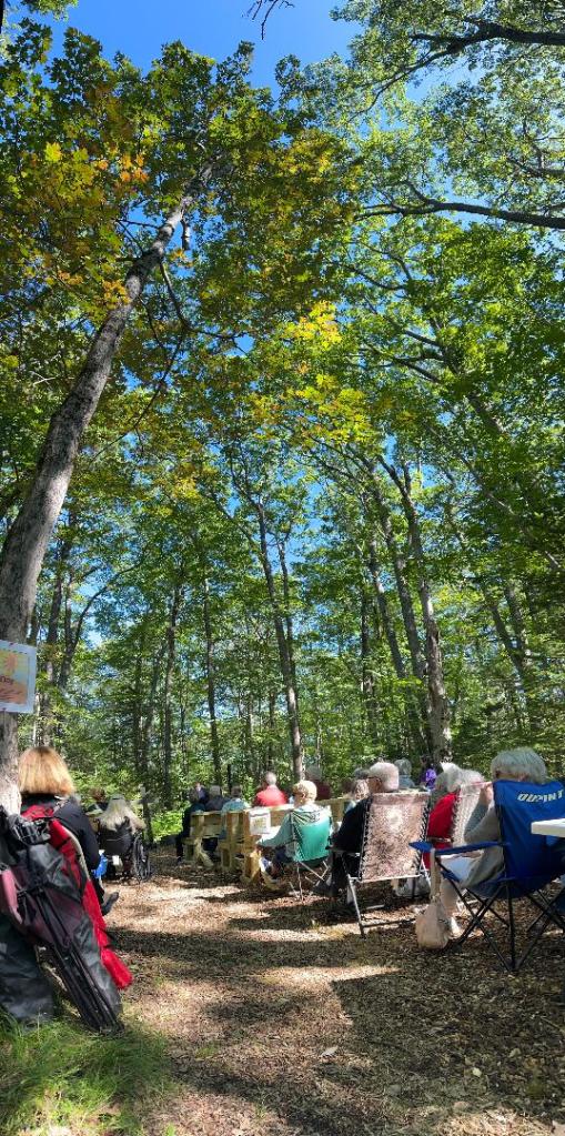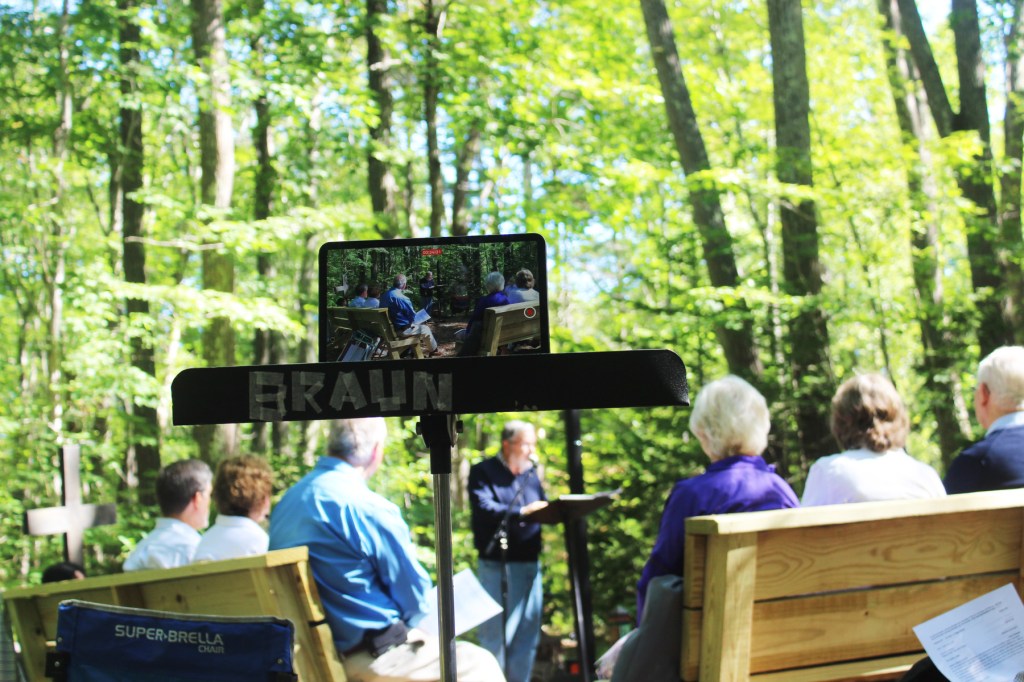 For the overall success of Sunday’s service, thank you to Mark Braun and Pastor Gwyneth for making it possible for a Zoom connection in the woods — the service was even viewed by someone in Florida!