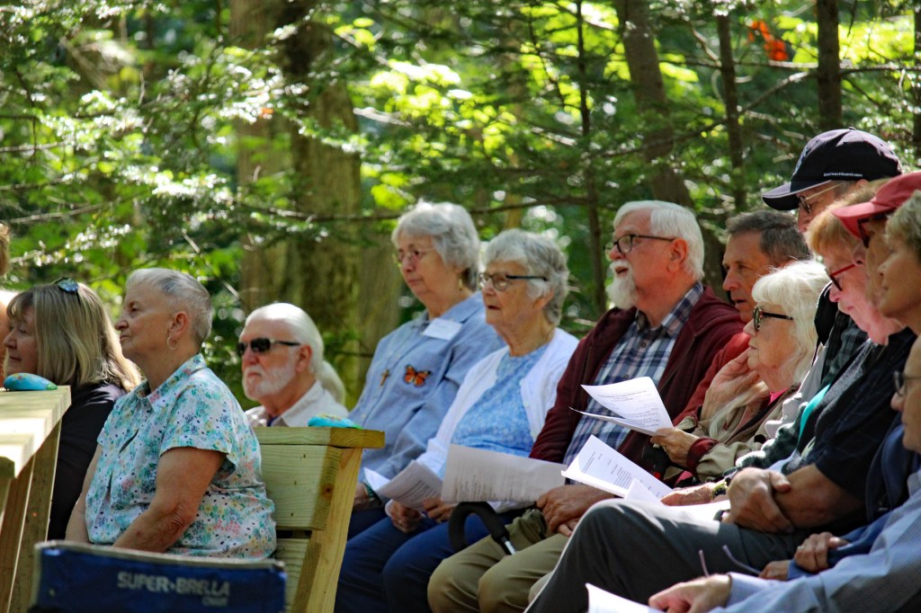 Organized and led by CEUMC Lay Leader Steve Hill, the 70-minute service was an opportunity for members of the three churches to sit side by side in the hickory and oak forest and embrace the natural wonders of God’s creation — up close and personal.