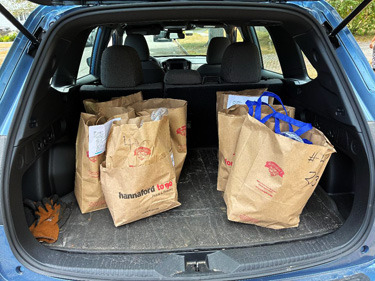 When the bags are filled, the volunteers pack their cars and make deliveries throughout the Greater Portland area.