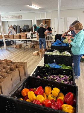 On the last Wednesday of every month, throughout the year, members of our church and 11 other faith communities and volunteers meet at St. Luke’s Episcopal Church in Portland to pack bags of food for clients of the Family Promise mission.