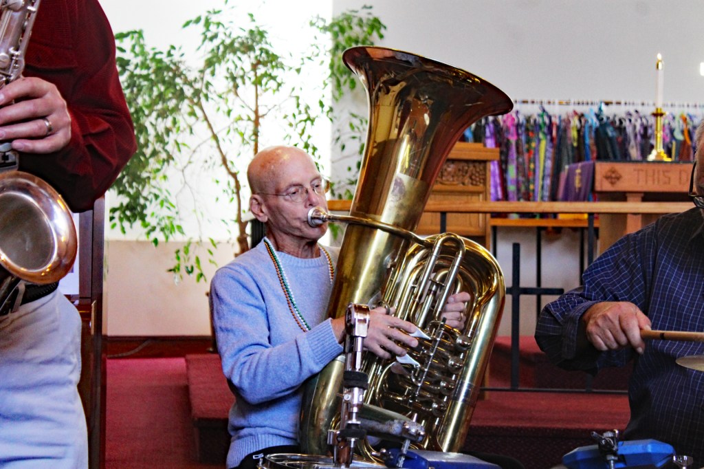 Our church’s Jazz Sunday — the Mardi Gras-style celebration before Ash Wednesday and the beginning of Lent — took on a different reverence on February 15, the first one since the passing of Stephen Bither, who first organized this event in 2009.