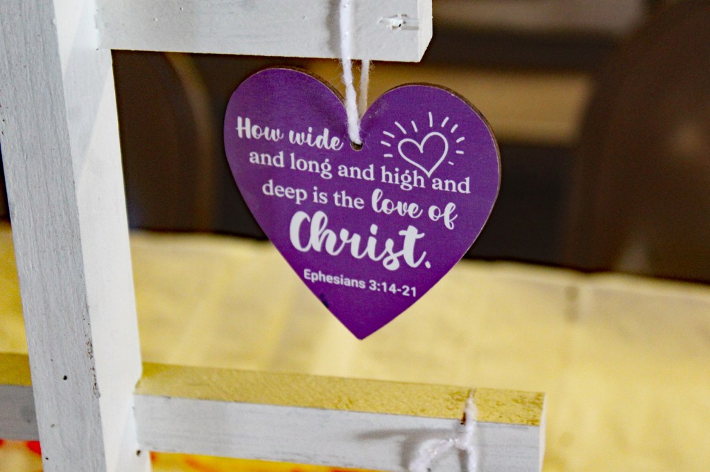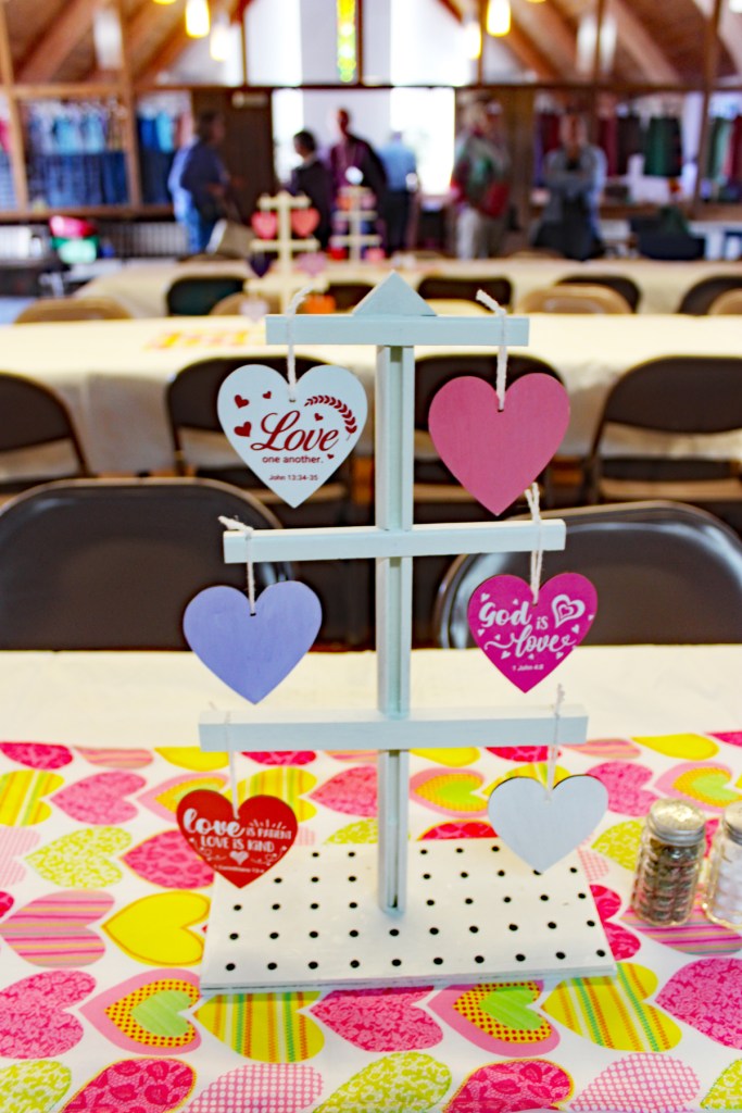 Dotty and Rod Frey also created centerpieces for all the tables from which colorful hearts were attached with messages of Love. Dotty told everyone to take a heart home and give one to someone who was in need of special care and love.
