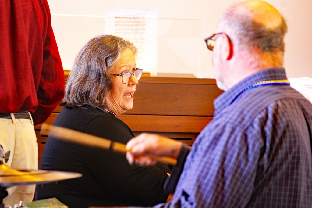 Faith led the jazz musicians on the piano — Stephen’s previous role — and was joined by Barry Daniels on clarinet, Peter Dunphy on banjo and vocals, David Ellis on drums, Peter Lord on saxophone and vocals, Tom Wilbur on tuba, and Tyler Rodenberger on organ.