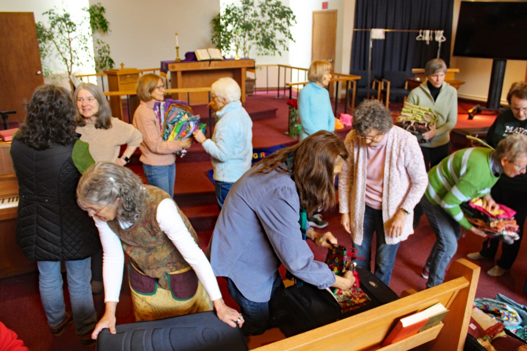 Judith Hill, with help from Linda Webster, gathered the women in our church’s sanctuary and blessed the dresses before they were packed in suitcases and sent out to young girls living in poverty throughout the world.