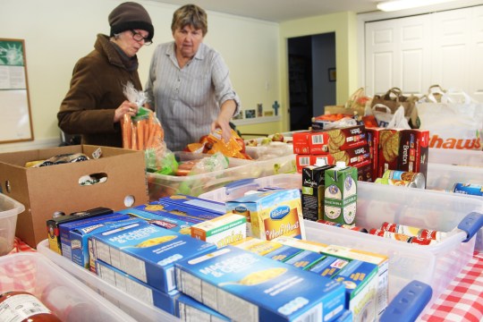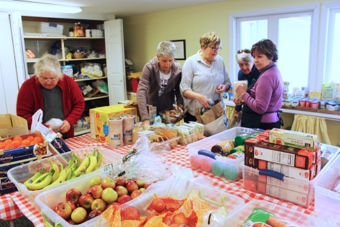 Volunteers preparing the pantry on a Tuesday afternoon.