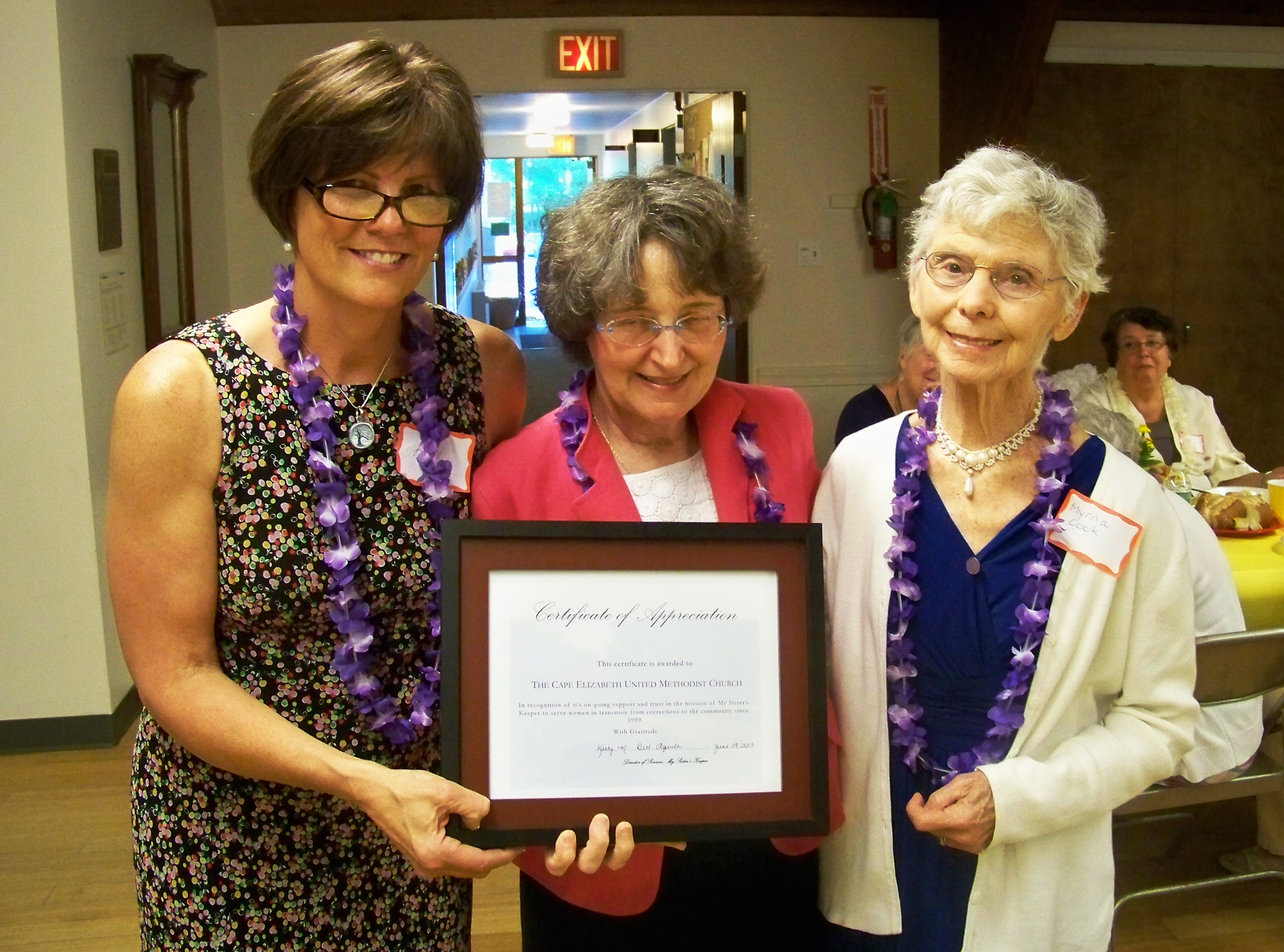My Sister’s Keeper was founded in 1999 by Myrna Cook of the Cape Elizabeth United Methodist Church. Myrna had been conducting faith-sharing Bible studies with women at the jail, where they talked about their fears upon being released.